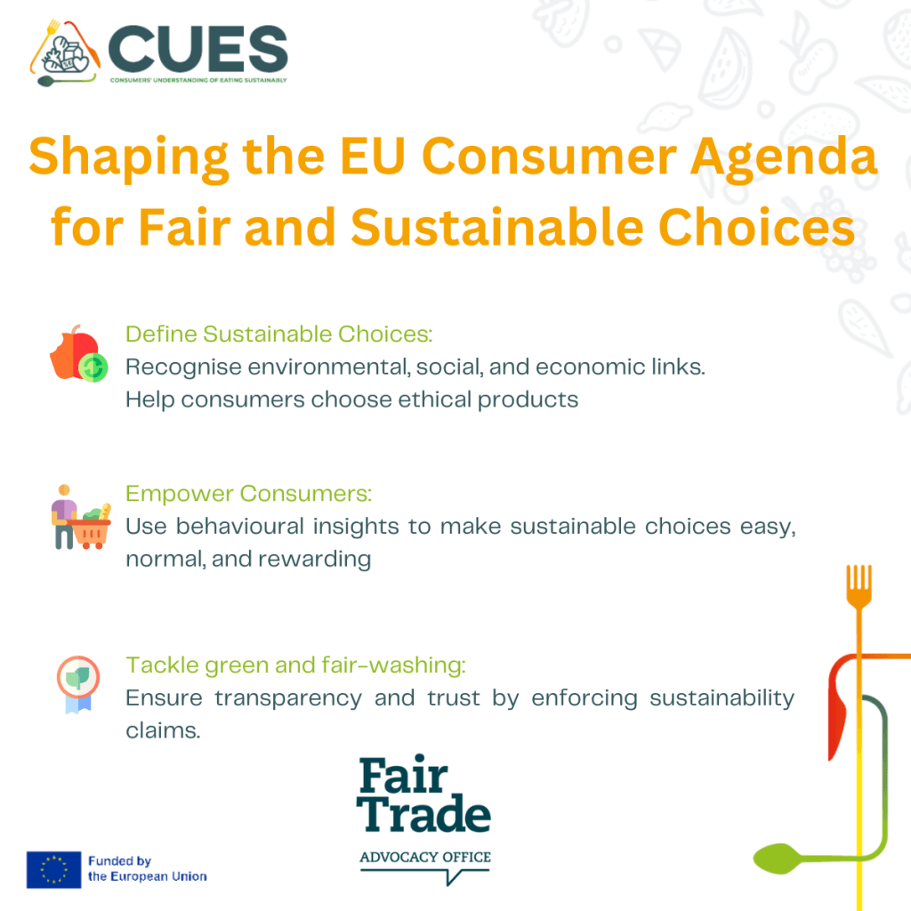 The Fair Trade Advocacy Office (FTAO), a key partner in CUES, has submitted a powerful response to the European Commission’s Consumer Agenda2025-2030, calling for policies that empower consumers to drive the green and just transition. This advocacy work directly mirrors CUES’s mission to promote sustainable consumption through education and stakeholder collaboration.